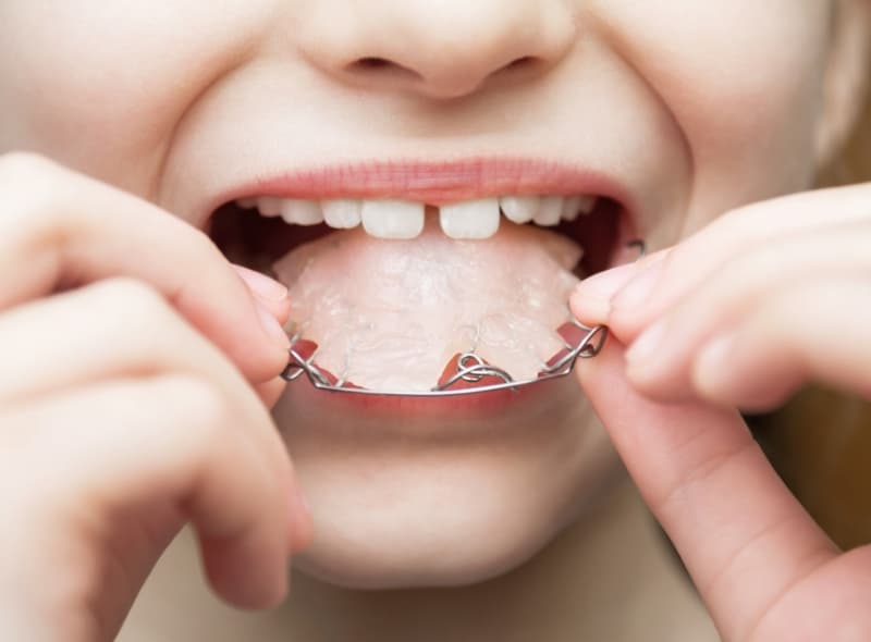 床矯正は取り外し可能なプレート型の装置を使用する方法です。主に成長期のお子様の顎の発育を誘導しながら、歯列の幅を広げたり、前歯の位置を整えたりします。装置は就寝時や家にいるときだけ装着するケースが多く、学校生活への影響も最小限に抑えられます。